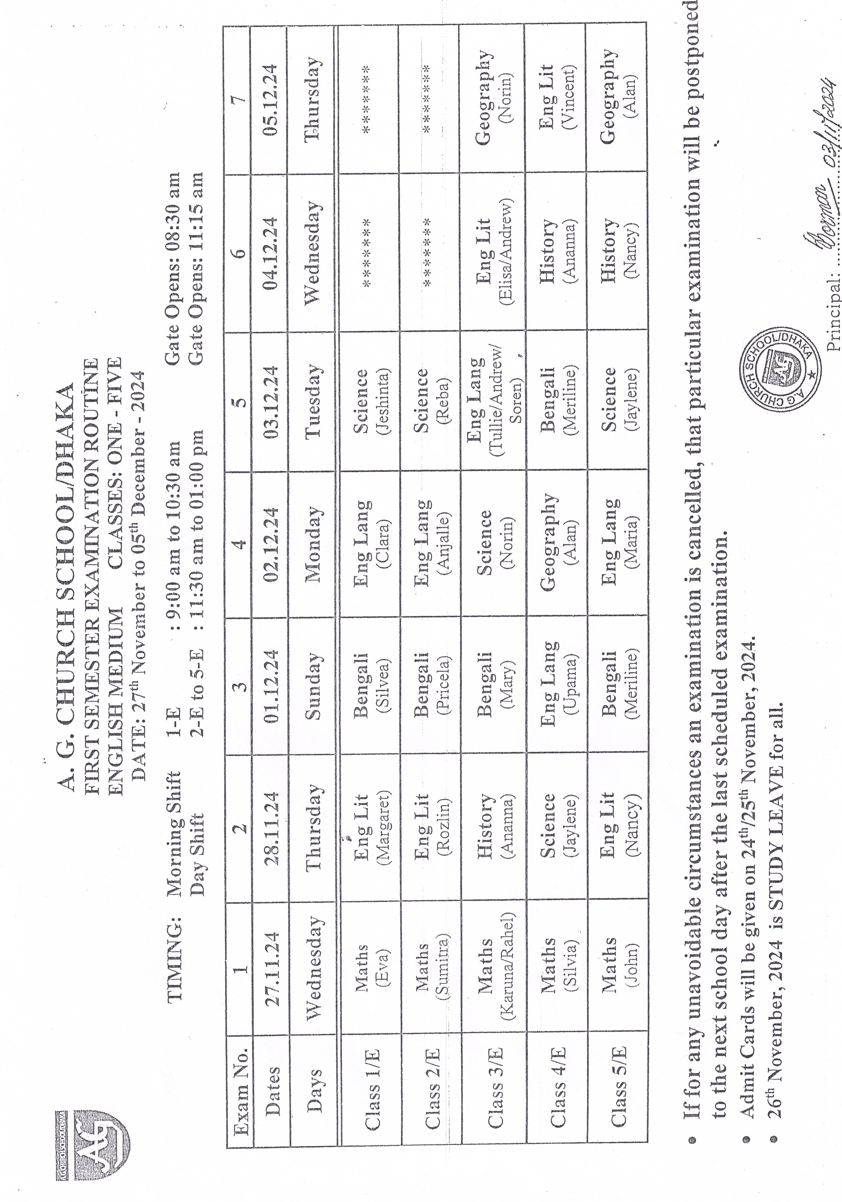 First Semester 2024-2025 Class 1 to Class 5